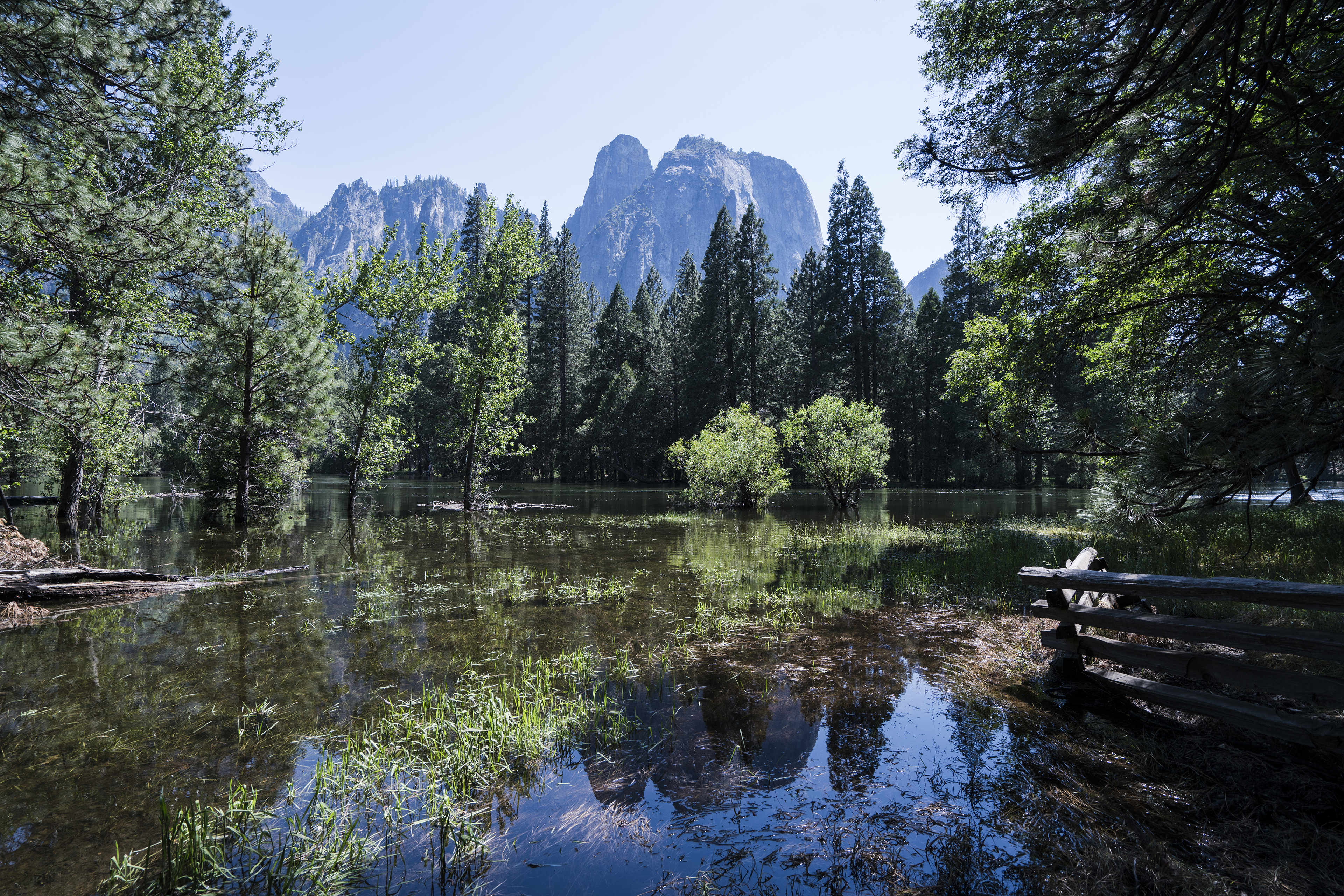 Visited Yosemite National Park in June 2017. It was hot as 100°F or 40℃. Riverside in the forest shade was most comfortable.